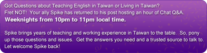 You can log-on to the Chat! Room anytime you want. It's ALWAYS open. And, to make it easier for people to ask and answer questions, there's a regular chat every night between 10pm and 1am Taiwan time. What time is that for YOU? Check the chart below, and we'll see you then.