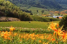 | 花蓮金針花季 花東三大金針賞花區為台東太麻里、花蓮六十石山與赤柯山,每年盛開於7~9月。金針花又稱一日花,因為從花開到花謝只有一天的美麗,賞花之餘還可以結合鄰近的花東縱谷旅遊、秀姑巒溪泛舟或安通溫泉、紅葉溫泉泡湯,假日非常適合來趟花蓮二日遊或三日遊。 |
