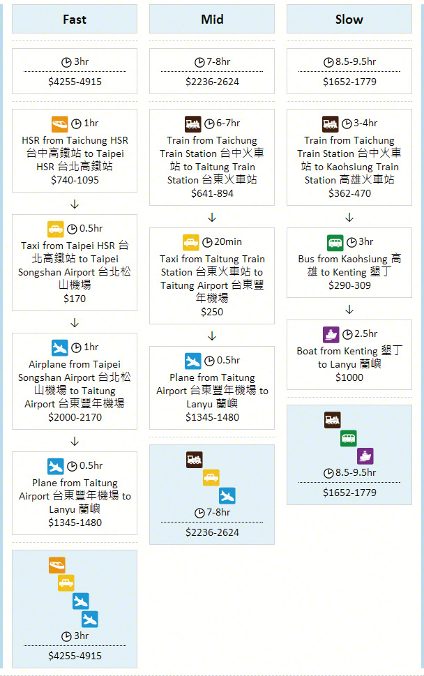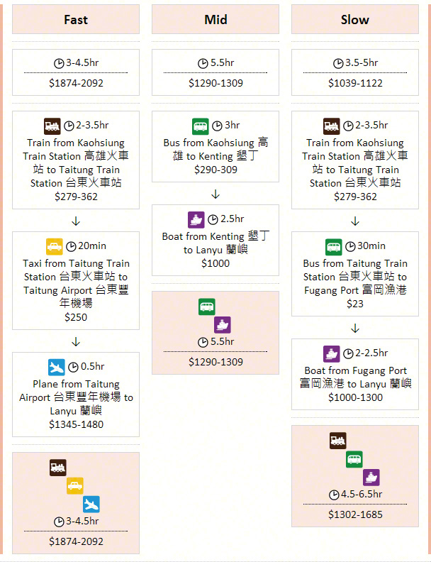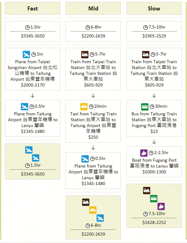 Taiwan Six Island - Lanyu Island Matsu Island Kinmen Island Penghu Island Xiaoliuqiu Green Island Lanyu Island Taipei 台北 → Lanyu Island 蘭嶼 Getting to Lanyu Island from Taipei Taichung 台中 → Lanyu Island 蘭嶼 Getting to Lanyu Island from Taichung Kaohsiung 高雄 → Lanyu Island 蘭嶼 Getting to Lanyu Island from Kaohsiung Articles Home Next Article